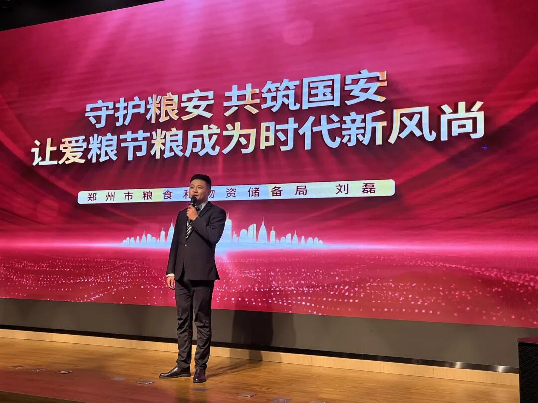 宣讲员刘磊以粮食安全和国家安全为切入点,结合郑州粮食储备工作实际,用鲜活案例、详实数据讲述了粮食从田间到餐桌的全过程,生动阐释了“一粥一饭当思来之不易,半丝半缕恒念物力维艰”的时代内涵。他不仅解读了国家粮食安全战略的重要意义,还分享了郑州市在粮食节约、物资储备、节粮技术推广等方面的实践成果,引导在场干部职工深刻认识到节约粮食既是传承中华传统美德的必然要求,也是保障国家粮食安全的现实需要。